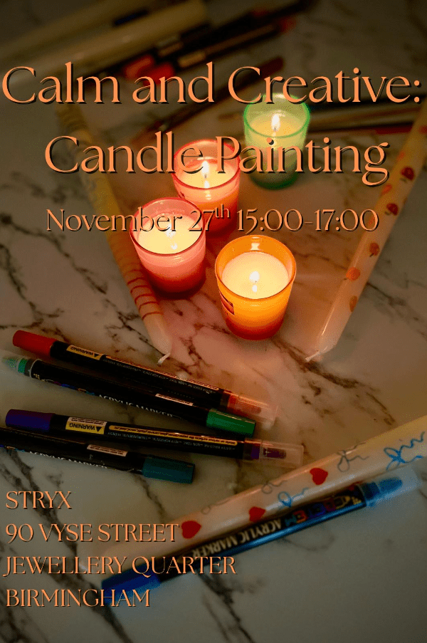 Tickets £5 general admission, free for ages 50+ Calm and Creative: Candle painting at Stryx Community Art Cafe and Gallery, Birmingham, B18 6JZ event tickets from TicketSource
