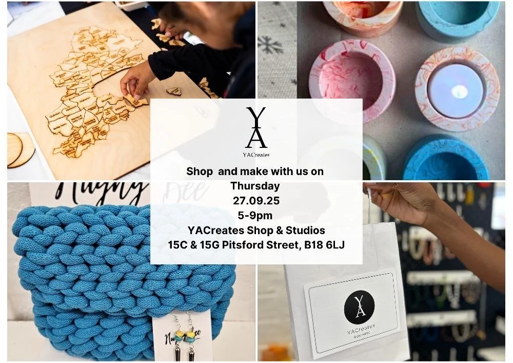 Where: YACreates Craft Shop and Studios, 15C & 15G Pitsford Street, Jewellery Quarter, B18 6LJ